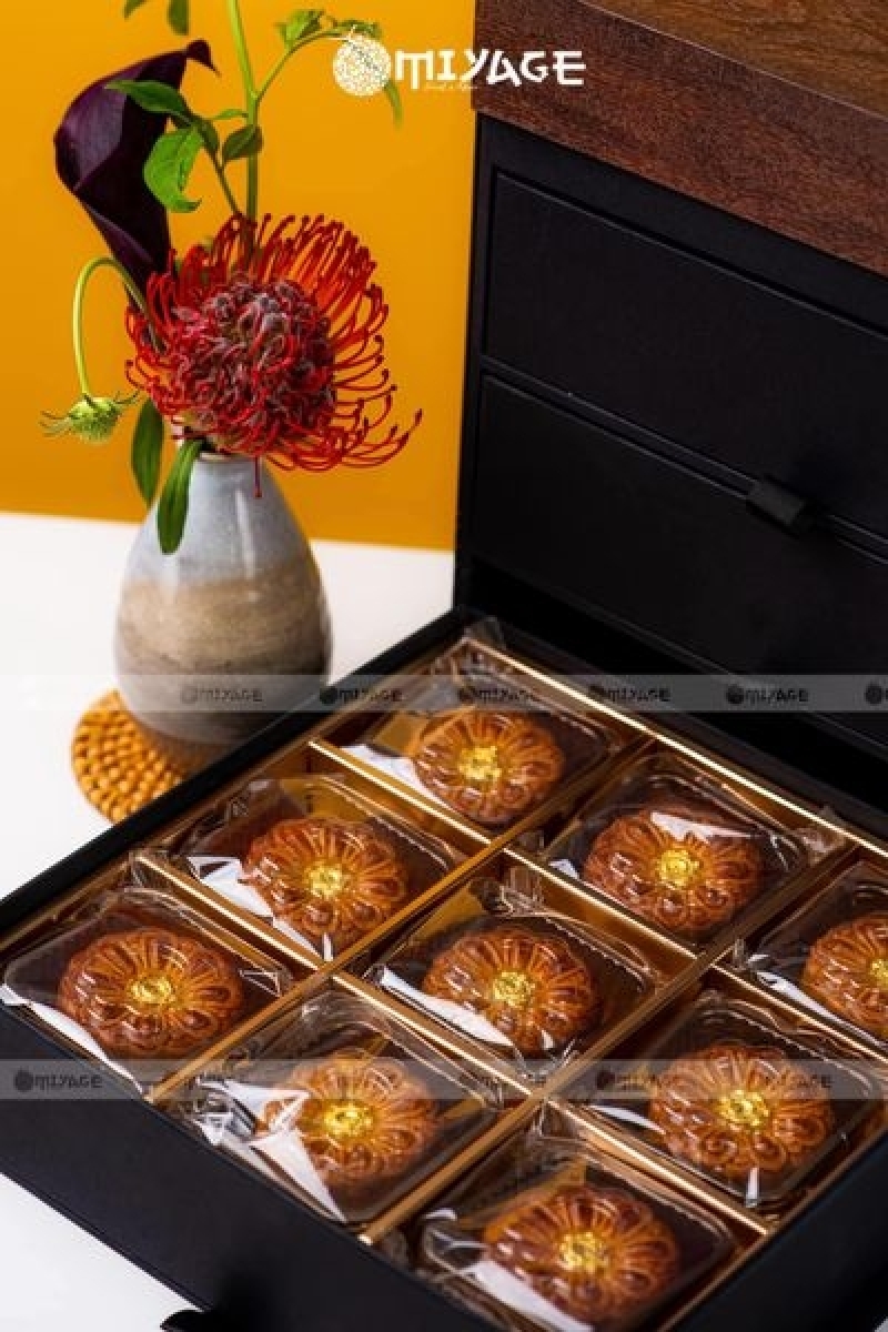 - Tầng 3 không thua kém tự sang trọng với 9 bánh Kee Wah nhân đậu đỏ vỏ quýt 15 năm dát vàng. Một dòng bánh sang chảnh bậc nhất với hương vị nhẹ dịu, thơm ngon