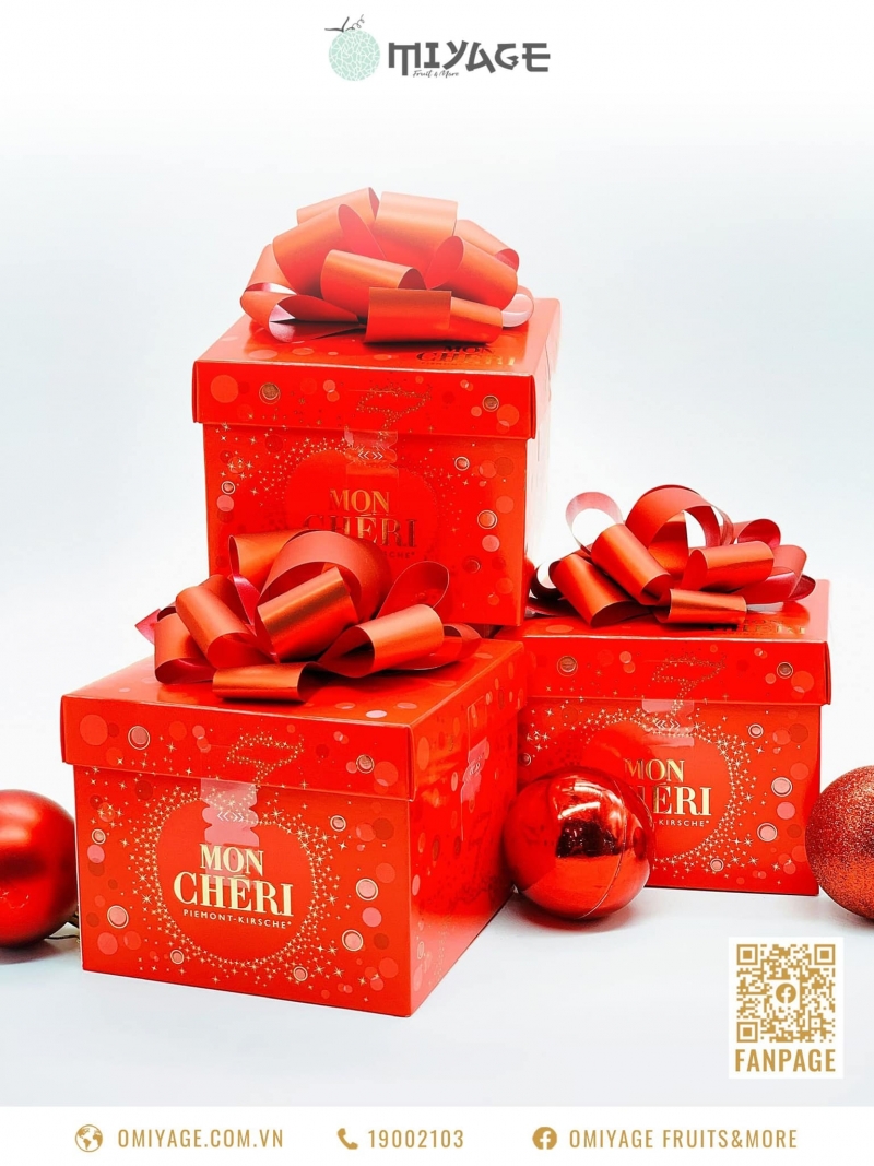 Socola nhân rượu và mứt anh đào Mon Cheri hộp quà đỏ